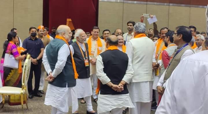 हैदराबाद में आयोजित भाजपा की राष्ट्रीय कार्यकारिणी की बैठक में पहुंचे उत्तराखंड के मुख्यमंत्री पुष्कर सिंह धामी ने कहा कि आदरणीय प्रधानमंत्री श्री Narendra Modi जी एवं राष्ट्रीय अध्यक्ष श्री J.P.Nadda जी का ऊर्जावान मार्गदर्शन हम सभी को सदैव संगठन एवं प्रदेश की सेवा हेतु अनवरत रूप से प्रेरित करता है।