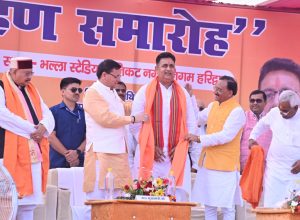 मुख्यमंत्री पुष्कर सिंह धामी मंगलवार को भल्ला इण्टर कॉलेज मैदान में आयोजित जिला पंचायत हरिद्वार के नव-निर्वाचित अध्यक्ष राजेन्द्र सिंह एवं उपाध्यक्ष अमित कुमार के शपथ ग्रहण समारोह में शामिल हुए।